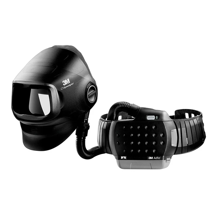 3M Speedglas Heavy Duty Welding Helmet G5-01 without welding filter, with 3M Adflo High Altitude Powered Air Respirator and carry bag.3M™ Speedglas™ Welding Helmet G5-01 with 3M™ Adflo™ High-Altitude Powered Air Respirator, without welding filter, 617800 can offer eye, face and respiratory protection with a flip-up welding filter in most welding applications. For use with 3M™ Speedglas™ Welding Filter Series G5-01 (sold separately).For respiratory protection and excellent vision in a flip-up model, get 3M™ Speedglas™ Welding Helmet G5-01 system with 3M™ Adflo™ Powered Air Respirator, without welding filter, 617800. Our welding helmet fits with 3M™ Speedglas™ Welding Filter Series G5-01 (passive or auto-darkening), to be ordered separately. The G5-01 helmet has a flip-up welding filter solution with a wide, clear 170 x 104 mm protective visor beneath that’s excellent for precision grinding in low-light conditions. 3M™ Adflo™ High-Altitude Powered Air Respirator comes with self-adjusting QRS breathing tube, prefilter, spark arrestor, particle filter, standard battery, charger and carry bag. Filters for gas protection or odour filtration can be added as needed (sold separately). Each filter can be replaced selectively without changing all filters at the same time.