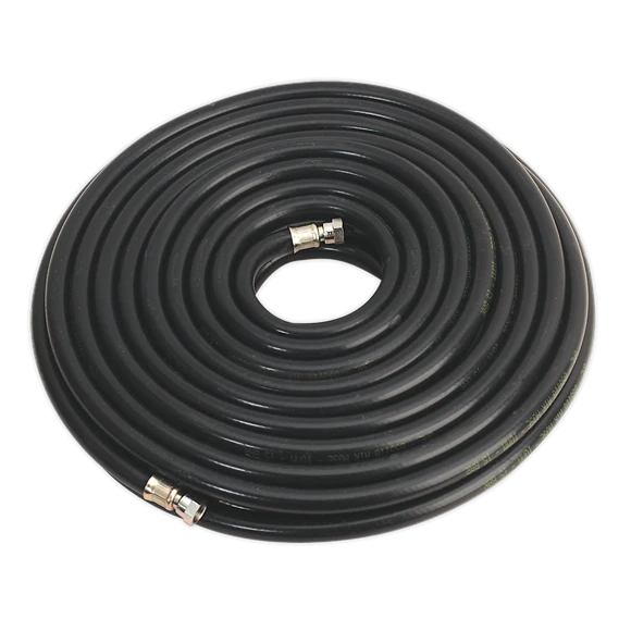 Manufactured in the UK in accordance to EN 5774. Rubber alloy air hose suitable for garage or bodyshop applications. Fitted with 1/4″BSP female swivel unions. Black hose supplied in pre-fitted lengths. Guaranteed silicon-free.