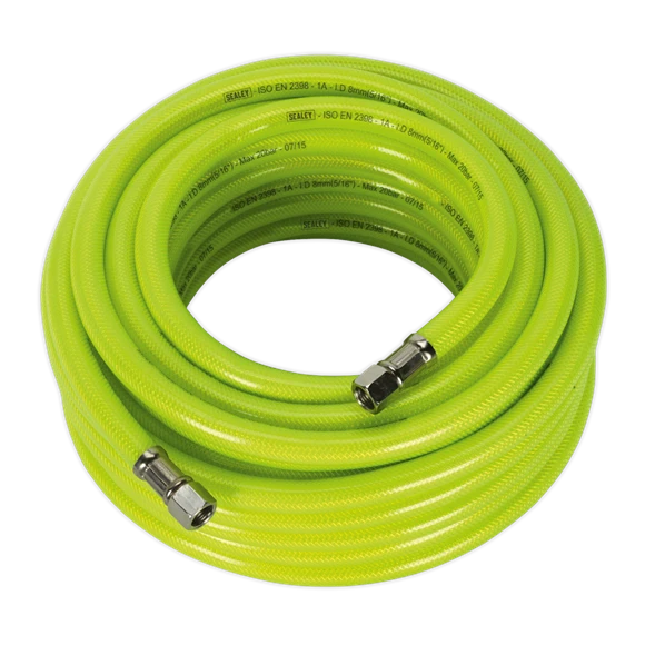 High-visibility for added safety around the workshop and on site. Manufactured in accordance with EN 5774. Features high grade TPR (Thermoplastic Rubber) inner tube and a reinforced PVC outer coating, which remains flexible in low temperatures. Fitted with 1/4″BSP female swivel unions. Silicon-free for use in the bodyshop.