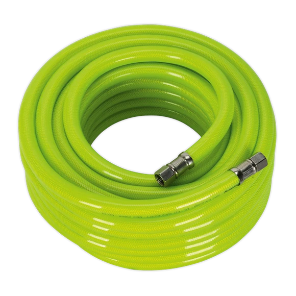 High-visibility for added safety around the workshop and on site. Manufactured in accordance with EN 5774. Features high grade TPR (Thermoplastic Rubber) inner tube and a reinforced PVC outer coating, which remains flexible in low temperatures. Fitted with 1/4″BSP female swivel unions. Silicon-free for use in the bodyshop.