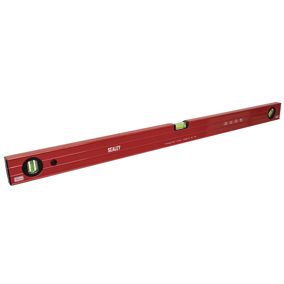1mm Aluminium ribbed box section level. Powder coated for corrosion resistance. Accuracy 1mm in 1m (0.057°). Model includes UV resistant and shockproof vials, one horizontal with side view, one vertical and one 45°. Base with precision milled face.
