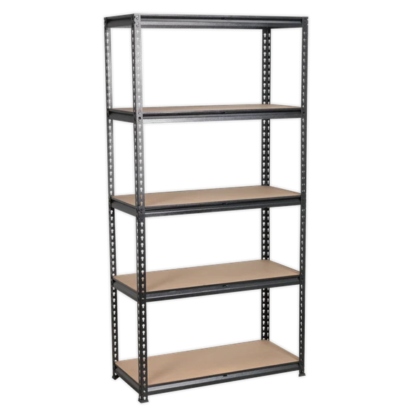Fully painted steel frame with five MDF shelves. 200kg Capacity per level giving a maximum capacity of 1000kg per rack. Boltless design means no tools required to assemble. Slots together in minutes. 2-Piece uprights allow use as a single bay rack or split into two separate shelf systems or workstations. Use in conjunction with Model No. AP7150C Corner Unit.