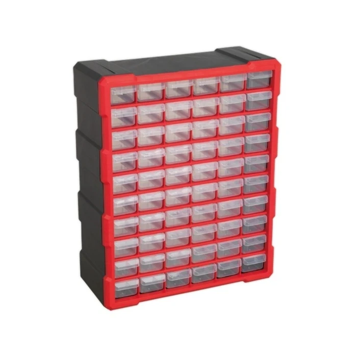 Tough and durable housing, contains 60 impact resistant composite drawers. Ideal for storing a mixture of small to large fixings and components. Fitted with fixing points for wall mounting or can be bench mounted (freestanding).