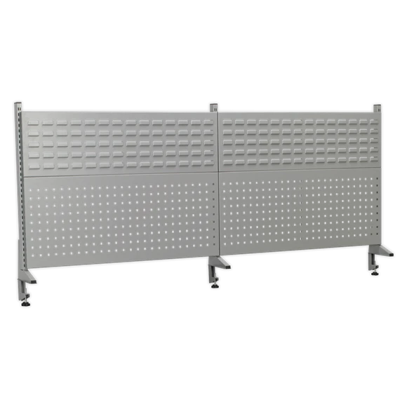Mounts simply onto workbench top. Supplied with two louvred panels and two PerfoTool storage back panels that help to keep work area free and tidy. Storage bins and hooks supplied separately. Compatible with Model No. API2100 Industrial Workbench.