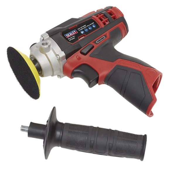 Compact, lightweight cordless polisher. Comfortable composite housing with soft grip to reduce vibration. 2-Speed settings and variable speed control trigger make this polisher easy-to-use. Integral LED battery level indicator. Supplied with side handle, two foam pads and one wool polishing pad. Requires Model No. CP1200BP 12V 1.5Ah Lithium-ion Battery and Model No. CP1200MC Battery Charger.