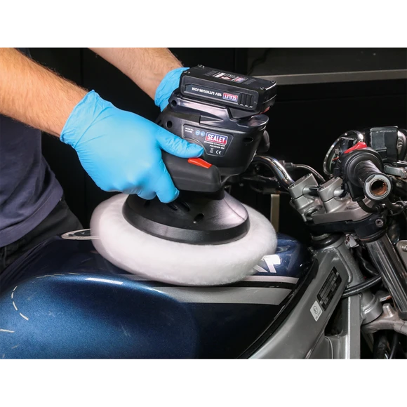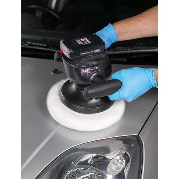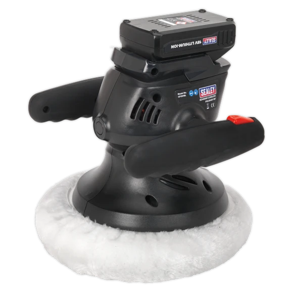 Cordless random orbital polisher with Ø240mm foam backing pad and polishing bonnet. Smooth operation provides even buffing/polishing with no hot spots. Adjustable handles provide a choice of three working positions, making it suitable for various tasks. Impact resistant housing with soft grip handles. Supplied with 18V Lithium-ion battery pack and battery charger.