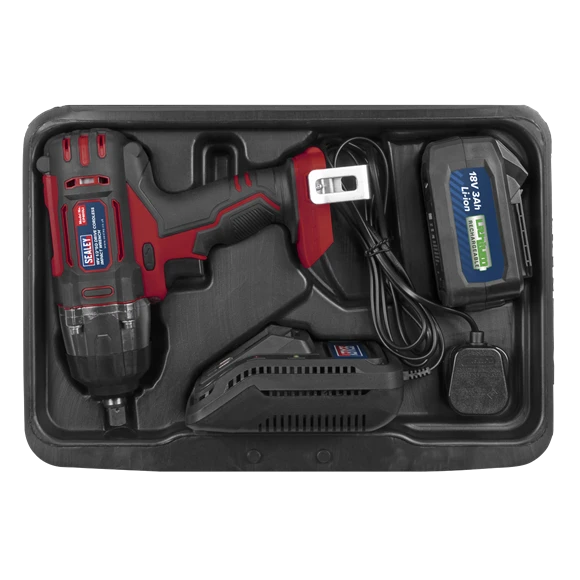 Variable speed trigger for greater control. Cast aluminium gearbox with rubber gearhead cover. Thermal overload protection. Double injection body with rubber grips for added comfort. Produces torque of up to 400Nm(295lb.ft). Fitted with electronic brake. LED Work light illuminates work area when trigger is pressed. Supplied in storage case with 3Ah Lithium-ion battery and 80 minute mains charger.