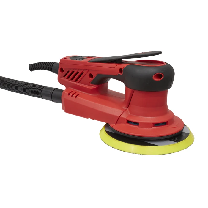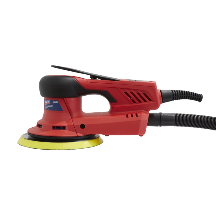 Ergonomic and compact lightweight sander. Brushless motor with constant speed control even whilst under load. 7-Stage variable speed control. Digital display. Supplied with dust-free Ø150mm backing pad, four sanding discs and dust extraction hose.