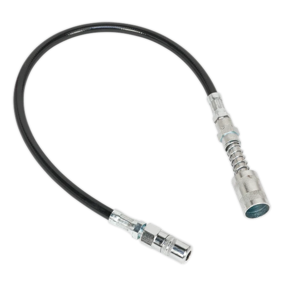 Flexible rubber snap-on extension with end hose. Supplied with 4-jaw grease gun end.