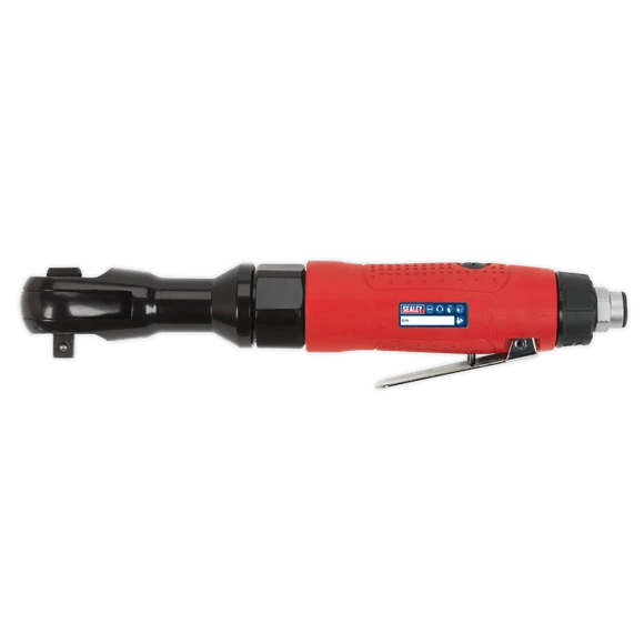 Generation Series air ratchet. Contoured handle insulates user from chill and vibration. Finger operated trigger and textured grip allows added control, even with greasy hands. Low noise exhaust adjusts 360°, keeping airflow away from operator.