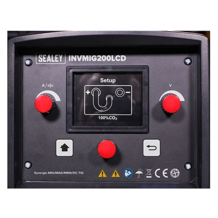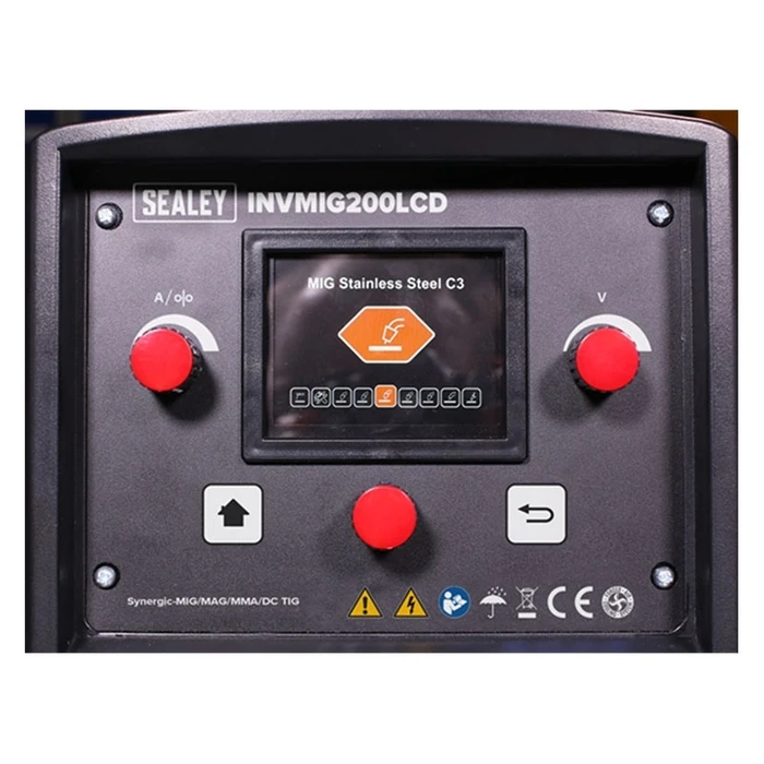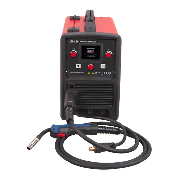 Manufactured with a pressed steel outer casing, lighter than traditional models at 20kg. Fully functional LCD front panel with easy to follow assisted set up. Up to four set ups can be saved on the machine for fast loading. Manufactured with a pressed steel outer casing, lighter than traditional models at 20kg. Fully functional LCD front panel with easy to follow assisted set up. First, select type of welding, you will be advised the gas mixture and polarity recommended. Input electrode or wire thickness, completing the set up with the material thickness, you are then ready to start welding. Up to four set ups can be saved on the machine for fast loading. Inverter technology offers many advantages over traditional transformer type welders, giving greater duty cycles and more power factor efficiency. 3-in-1 Welder uses state-of-the-art technology to achieve MIG/TIG/MMA (Arc). Suitable for arc welding a variety of rods including rutile, basic and stainless. Fan cooled DC power supply for MIG and TIG, suitable to weld steel, stainless steel, copper, nickel, titanium and their alloys. Switchable between MIG, TIG* or MMA* welding modes (*optional extra torches required). Thermal overload warning tells you to switch off when it exceeds maximum temperature. Wire feed control for adjusting speed of wire fed through the torch during welding. Polarity change terminals allow for MIG or flux-cored welding. Includes 3m MIG torch, earth cable, gas hose, regulator and contact tips.