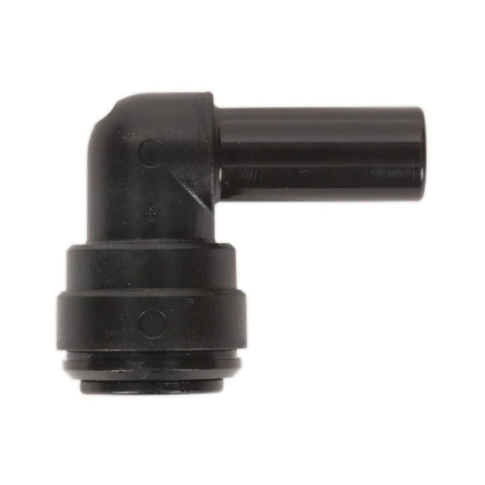 Speedfit® pneumatic couplings, stem elbow couplings supplied in sizes 6, 8,10 and 12mm. Material specifications; bodies are produced in an acetal copolymer engineering plastic, especially suitable for pneumatics and corrosion free applications; O-rings are nitrile rubber; collets are produced in acetal copolymer with stainless steel teeth.