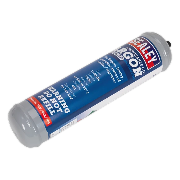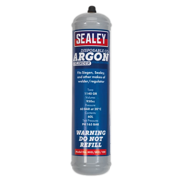 Portable sized disposable cylinder for the mobile welder. Fits Sealey and other makes of welder/regulator. When comparing price, always check fill capacity.