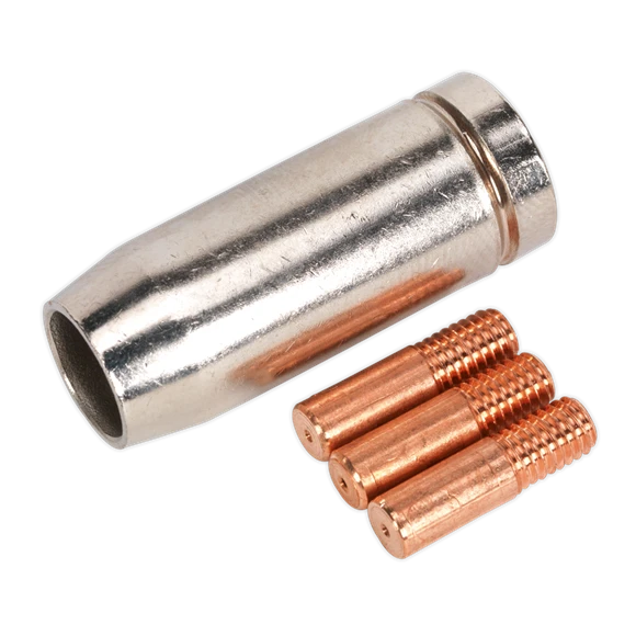 - Pack of three 0.6mm contact tips and one conical nozzle suitable for use with our range of Mightymig® welders.