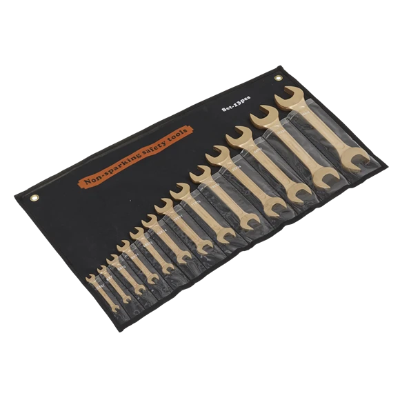 Manufactured from Beryllium Copper. Die forged double open-ended spanners. Supplied in a storage pouch.