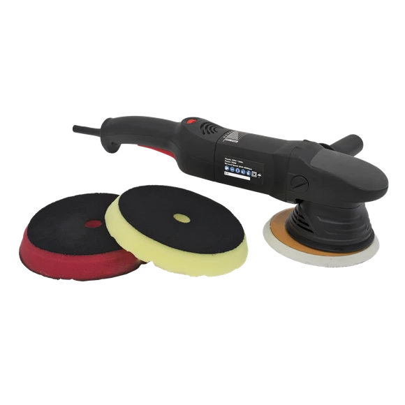 Ø21mm Orbit specifically designed for use in the bodyshop. 6-Stage variable speed control ranging from 2000-4500rpm. Vibration reducing motor and rubberised gear head cover allow for greater comfort and reduce user fatigue. Soft start for greater control. Speed stabilizer to ensure constant speed output. Fitted with 5m mains cable. Supplied with Ø150mm backing pad, two Ø180mm foam polishing pads, side handle, wrench and spare brushes.