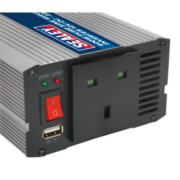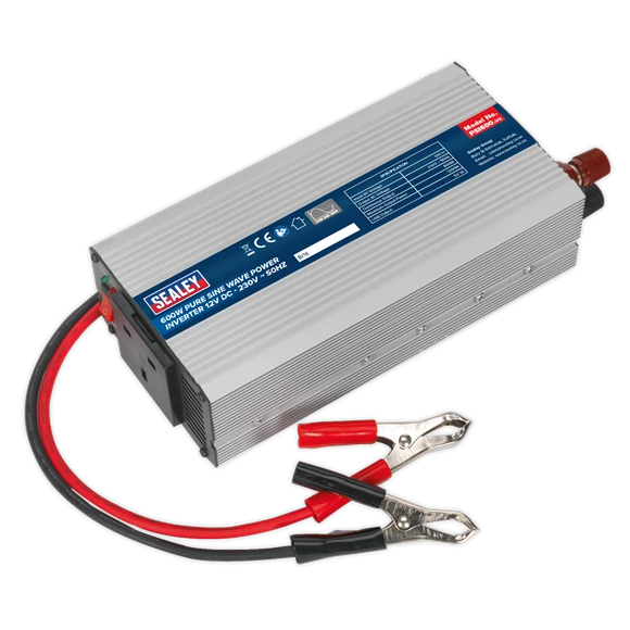 Pure sine wave inverter designed to produce the same AV frequency produced on the grid, making it more reliable than traditional inverters, without any fluctuation in power or performance. Operates from a 12V DC power supply found in cars, caravans, boats and commercials. High performance outlet eliminates electrical interference, reducing noise levels during use. Suitable for powering small TVs, laptops, power tools and various electrical equipment within the wattage rating of the inverter. Includes USB outlet for charging and operating small electric devices. Aluminium case provides durability and maximum heat dissipation. Safety features include automatic overload shutdown and short circuit protection. Supplied with battery clips.