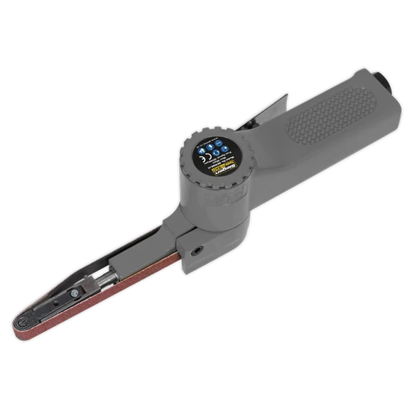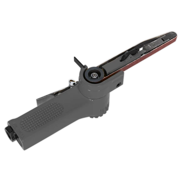 Aluminium housing with articulated sanding arm. Features belt tracking control, heavy-duty nose roller and one-handed trigger operation. Suitable for sanding otherwise inaccessible areas such as around door-shuts. Supplied with three belts. Replacement belts readily available, see XXX.