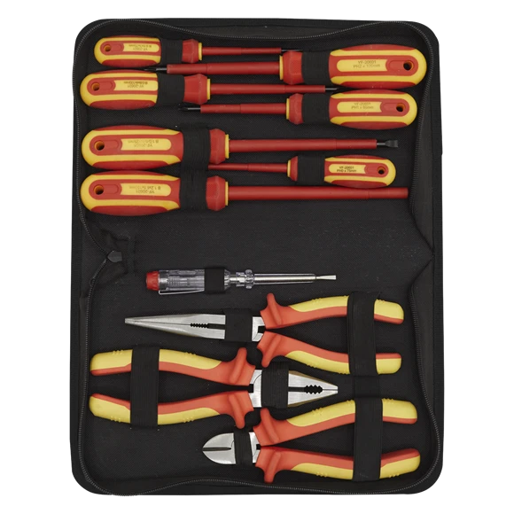 - Contents: Screwdrivers: Slotted – 3 x 75mm, 4 x 100mm, 5.5 x 125mm, 6.5 x 150mm, Phillips – #0 x 75mm, #1 x 80mm, #2 x 100mm, 175mm Combination Pliers, 150mm Side Cutters, 200mm Long Nose Pliers, Voltage Tester.