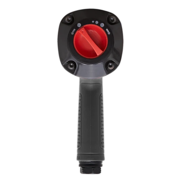 Combination of composite materials, alloyed metals and twin hammer design, result in a lightweight, durable and powerful air impact wrench. Composite handle helps reduce the effects of vibration and chill. Handle exhaust reduces noise output and limits the circulation of brake dust on wheel applications. Fingertip Control of power and direction via lever on rear of wrench. Suitable for garage, tyre shop and workshop applications.