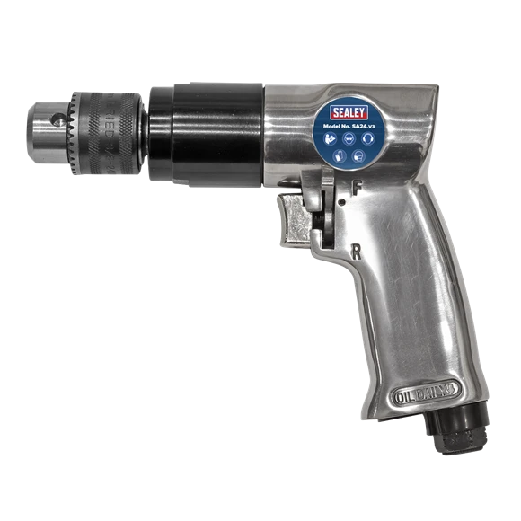 Polished aluminium housing and planetary gear drive assembly. Fitted with Ø10mm chuck and supplied with chuck key. Reverse action suitable for driving fixings. Suitable for general workshop use.