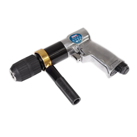 Powerful drill with polished aluminium housing, planetary gear drive assembly and Ø13mm Jacobs keyless chuck. Fitted with flip reverse control and supplied with side handle. Suitable for heavy workshop use.