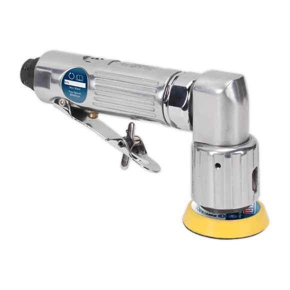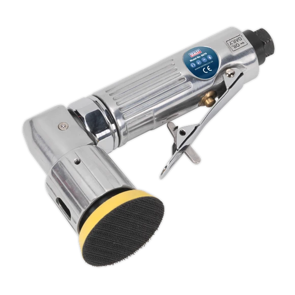 Lightweight sanding tool with aluminium housing suitable for use with Ø50mm sanding discs. Air motor with quality bearings for smooth and powerful operation. Fitted with safety trigger to prevent inadvertent operation and rear exhaust for quiet operation. Supplied with Ø50mm pad and spanner.