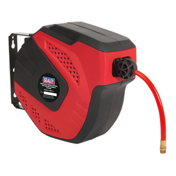 Composite housing with heavy-duty wall mounting swivel bracket. Fitted with high quality PU hose. Auto-layering mechanism distributes air hose evenly back into reel housing preventing it from jamming. Suitable for professional garages/workshops.