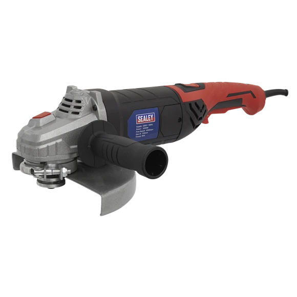 Suitable for a variety of trade applications. Features heavy-duty alloy bevel gear head with spindle lock for fast loading/unloading of discs. Vibration reducing double injection composite body with rubber coating for added comfort. Powerful 2000W heavy-duty motor produces 6500rpm (no-load speed). Tool-less wheel guard for quick and easy adjustment. Built-in LED power indicator. 2-Stage trigger for added safety. Fitted with soft start to reduce mains draw when switched on. Supplied with side handle, guard and spanner. Fitted with over 2m of power cable and 3-pin plug. Grinding disc not included, order Model No. PTC/230G.