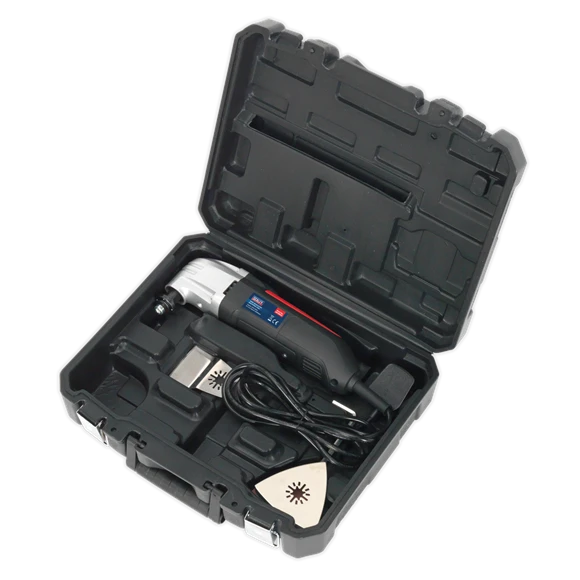One tool suitable for multiple tasks such as sanding, scraping and cutting various materials. Single speed with 180W motor and sealed bearings. Includes sanding discs, backing pad, offset cutting blade and offset scraper all supplied in a convenient storage case. Full range of additional accessories available.