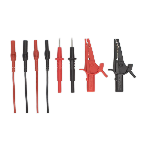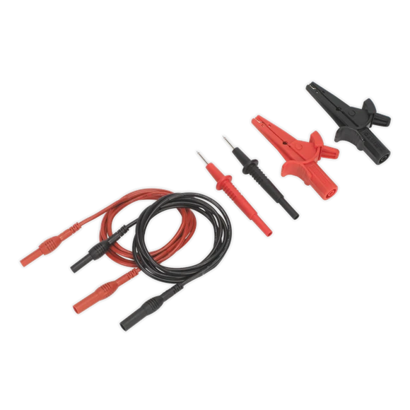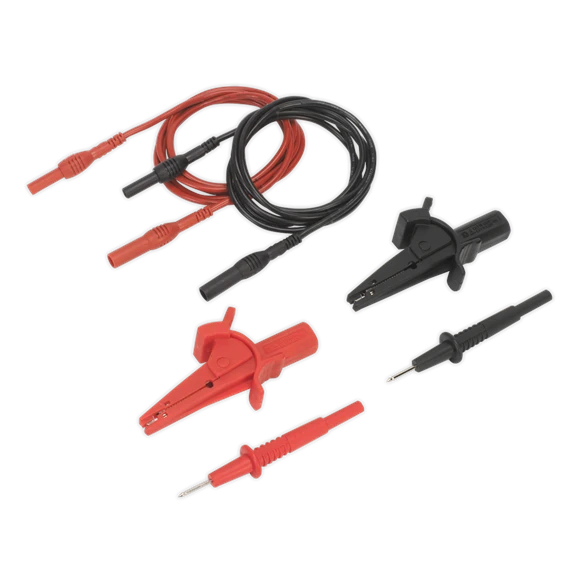 Set of 1.35m automotive test leads with Ø4mm banana style connectors. Used for testing and diagnosing faults in electronic circuits. Suitable for use with most multimeters and analysers.