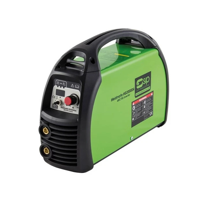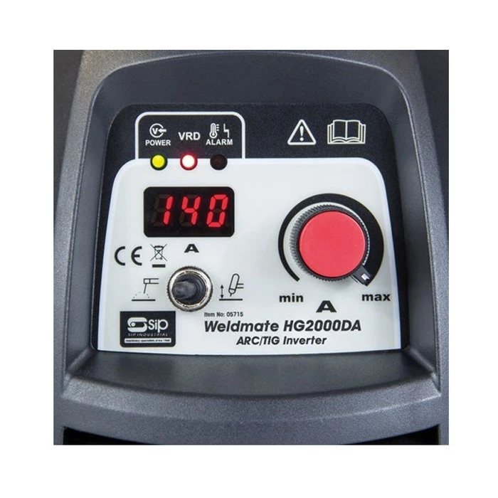 The SIP HG2000DA ARC Inverter Welder is part of the ARC/TIG welder range therefore is equipped with a Voltage Reduction Device, anti-stick circuitry, and dinse sockets. This welder is lightweight, generator friendly, and powered by a 230v (20amp) domestic power supply. It produces a current range of 20-200amps and 1.6mm-5mm electrode size.