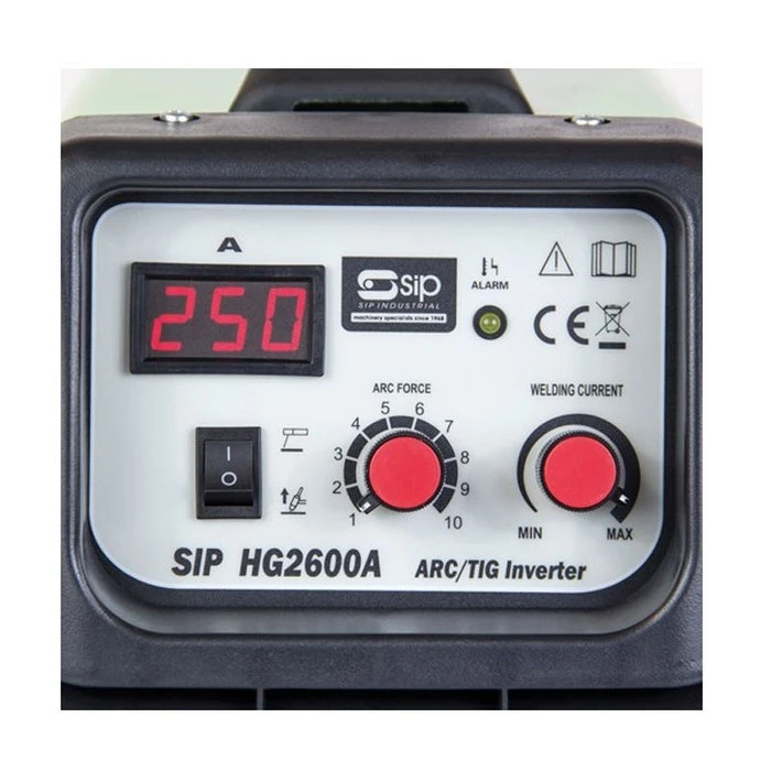 The SIP HG2600A ARC/TIG Inverter Welder is part of the ARC/TIG welder range therefore is equipped with a Voltage Reduction Device, anti-stick circuitry and dinse sockets. This welder is lightweight, generator friendly and powered by a 230v (22amp) domestic power supply. It produces a current range of 30-250amps and 1.6mm-5mm electrode size. Comes with: Welding Cable, Electrode Holder & Earth Cable and Clamp