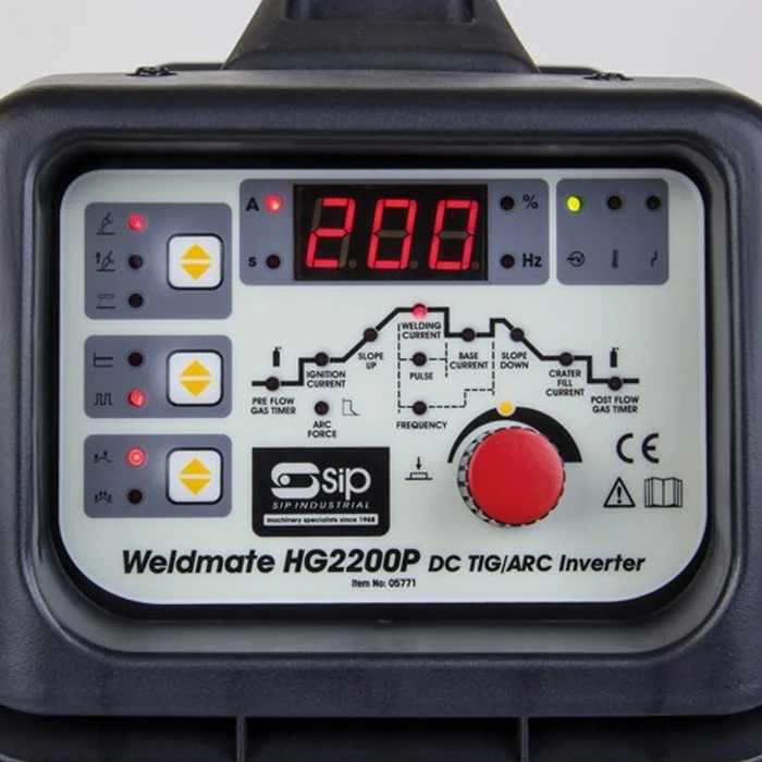 The SIP Weldmate HG2200P DC TIG/ARC Welder with Pulse is designed for welding steel, stainless steel and copper. This welder offers a high stick-circuitry, a high frequency TIG for easy starting and a DC output current. Designed to offer a 5-200amp TIG output current and 20-200amp ARC current.