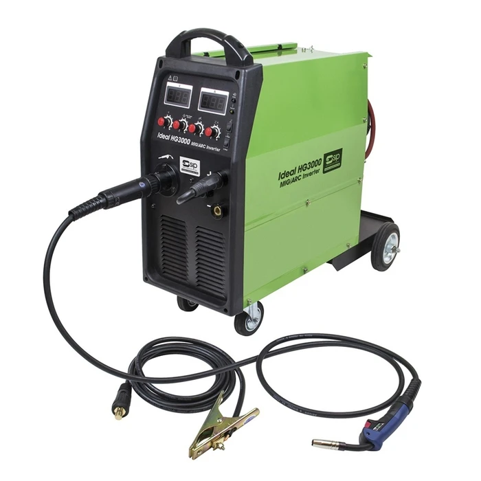 The SIP dual purpose MIG/ARC inverter welder can enter two modes, gas and gasless, and comes ready to weld in gasless mode. Features include wire feed control with inching button, 2/4 touch control, inductance control and thermal overload protection. With built on wheels, this inverter welder can be manoeuvred with ease. The heavy duty casing ensures durability. The SIP dual purpose MIG/ARC comes complete with a 3 metre earth cable with earth clamp, 3 metre MB25 MIG torch with 0.8mm contact tip, 3 metre 8mmØ gas hose and hose clamp.